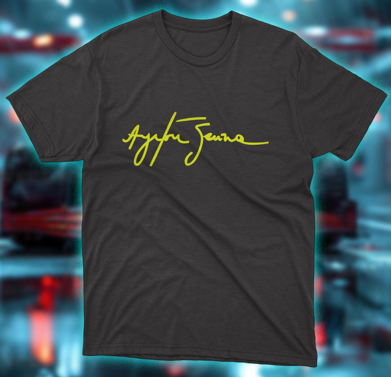 Home / Shop Helmets / T-Shirts / Ayrton Senna Signature T-Shirt (Black / Neon Yellow)