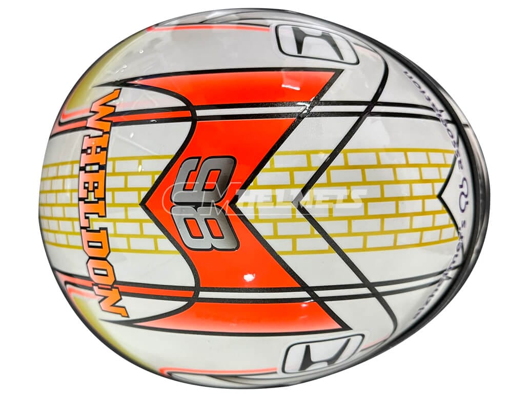 This helmet is an exact replica of the helmet worn by Dan Wheldon in the Indy 500 Celebration during the 2011 Goodwood Festival of Speed.
