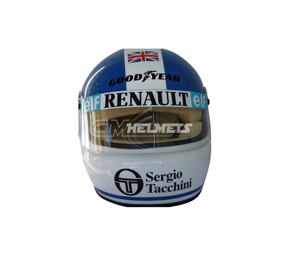 This is an exact replica of the helmet worn by Formula 1 driver Derek Warwick during the 1985.