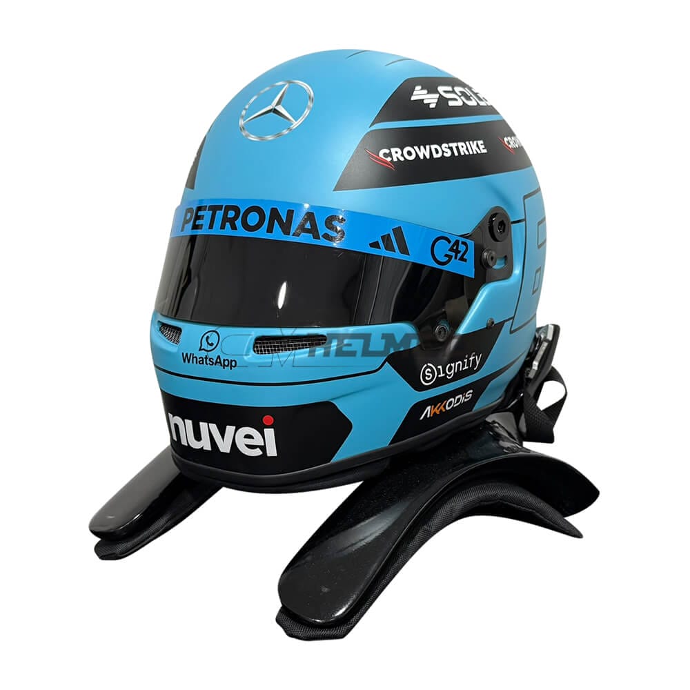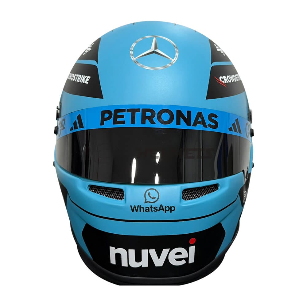 This is a replica of the helmet worn by George Russell in the 2025 Formula 1 season.
