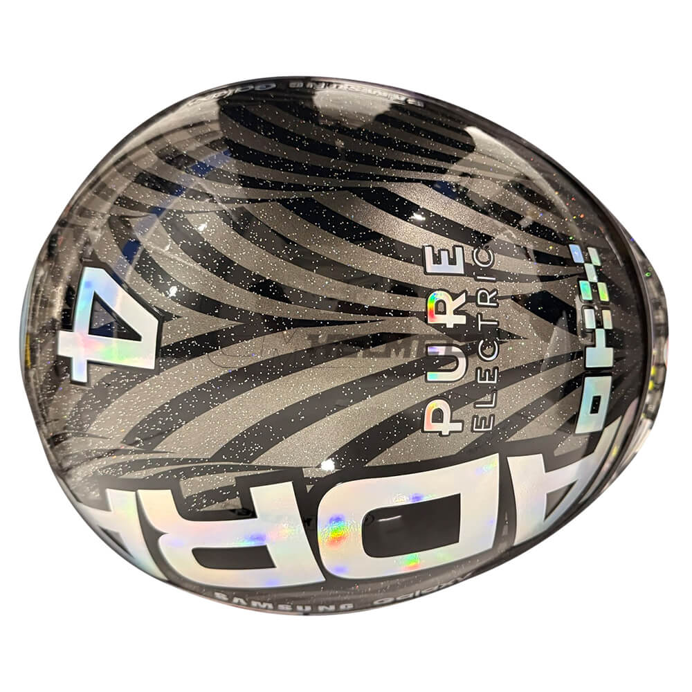 This is a highly sought-after collector’s item. All the little aerodynamic shapes, colors, and decals have been replicated to perfection on this helmet.