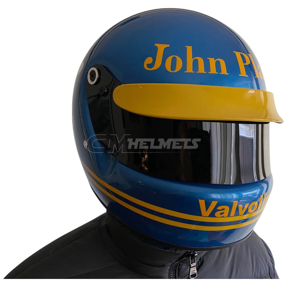 This is an exact replica of the helmet worn by Ronnie Peterson in his first two seasons with Lotus (1973 and 1974).